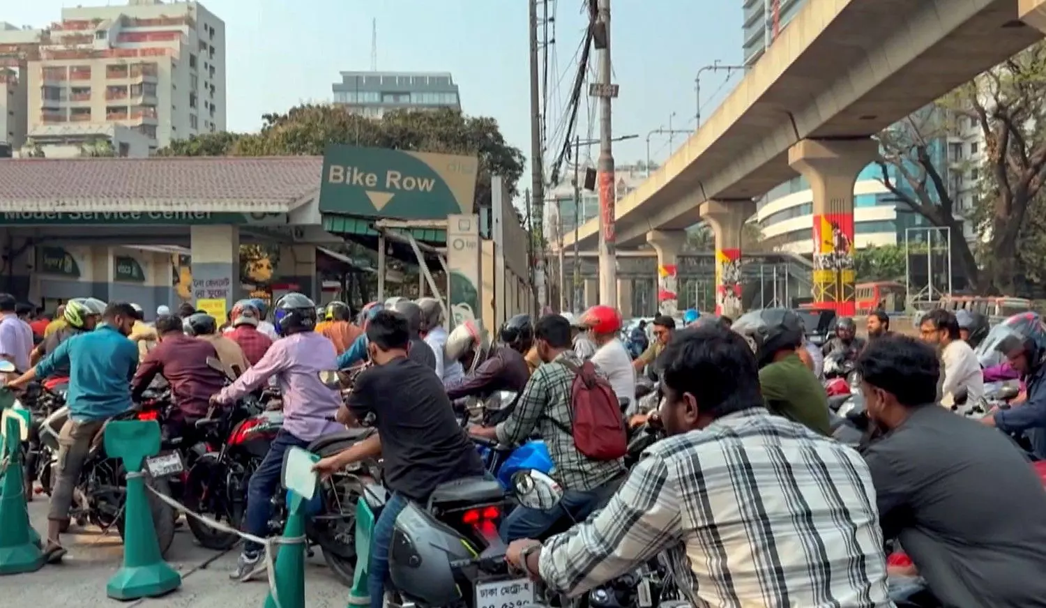 People wait in a long queue at a petrol pump in Dhaka, Bangladesh, on March 6, 2026, amid concerns over fuel supply shortage due to the ongoing war in West Asia. Photo: PTI