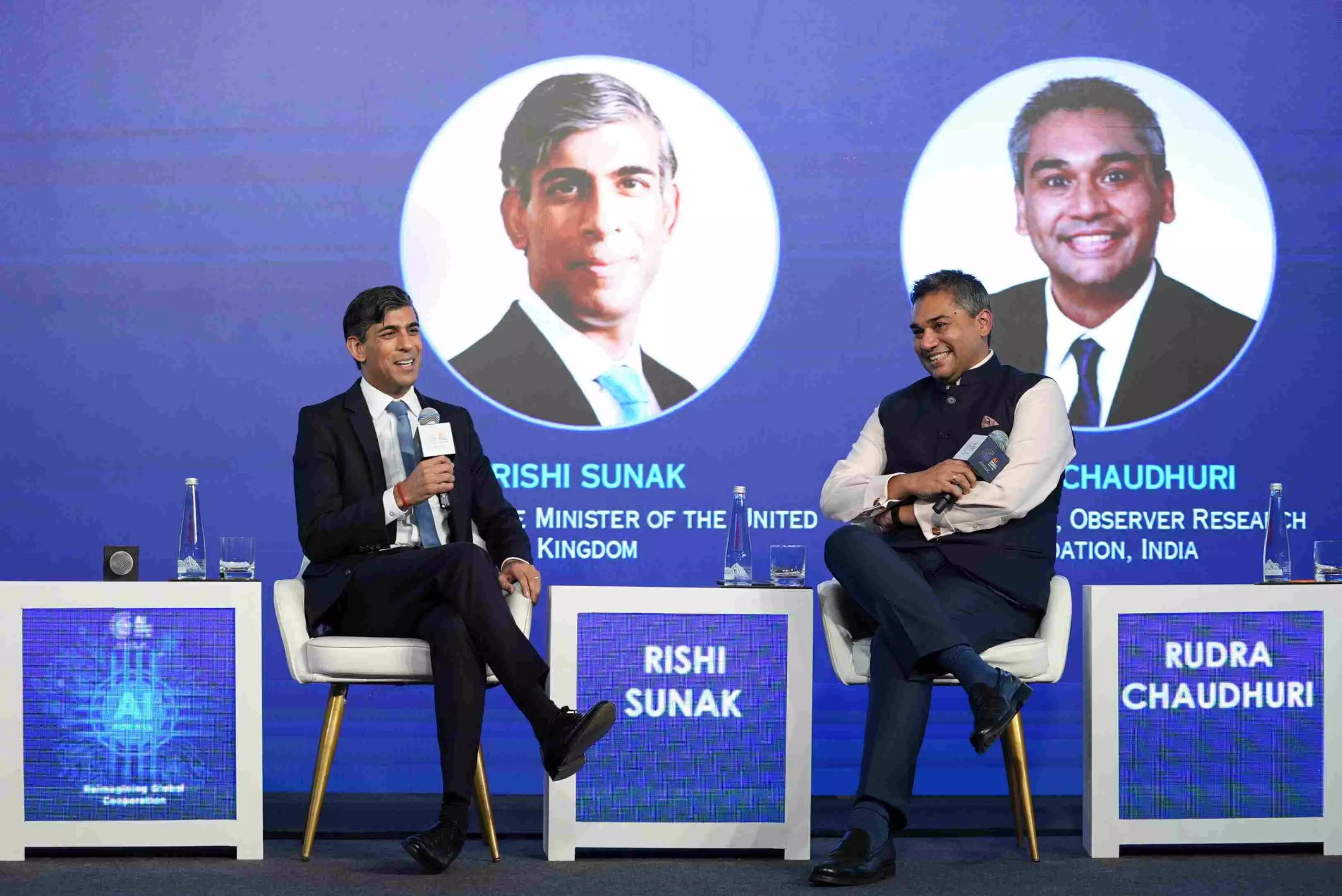 Former UK prime minister Rishi Sunak, left, during a session at the India AI Impact Summit 2026, in New Delhi. Photo: X |@RishiSunak via PTI