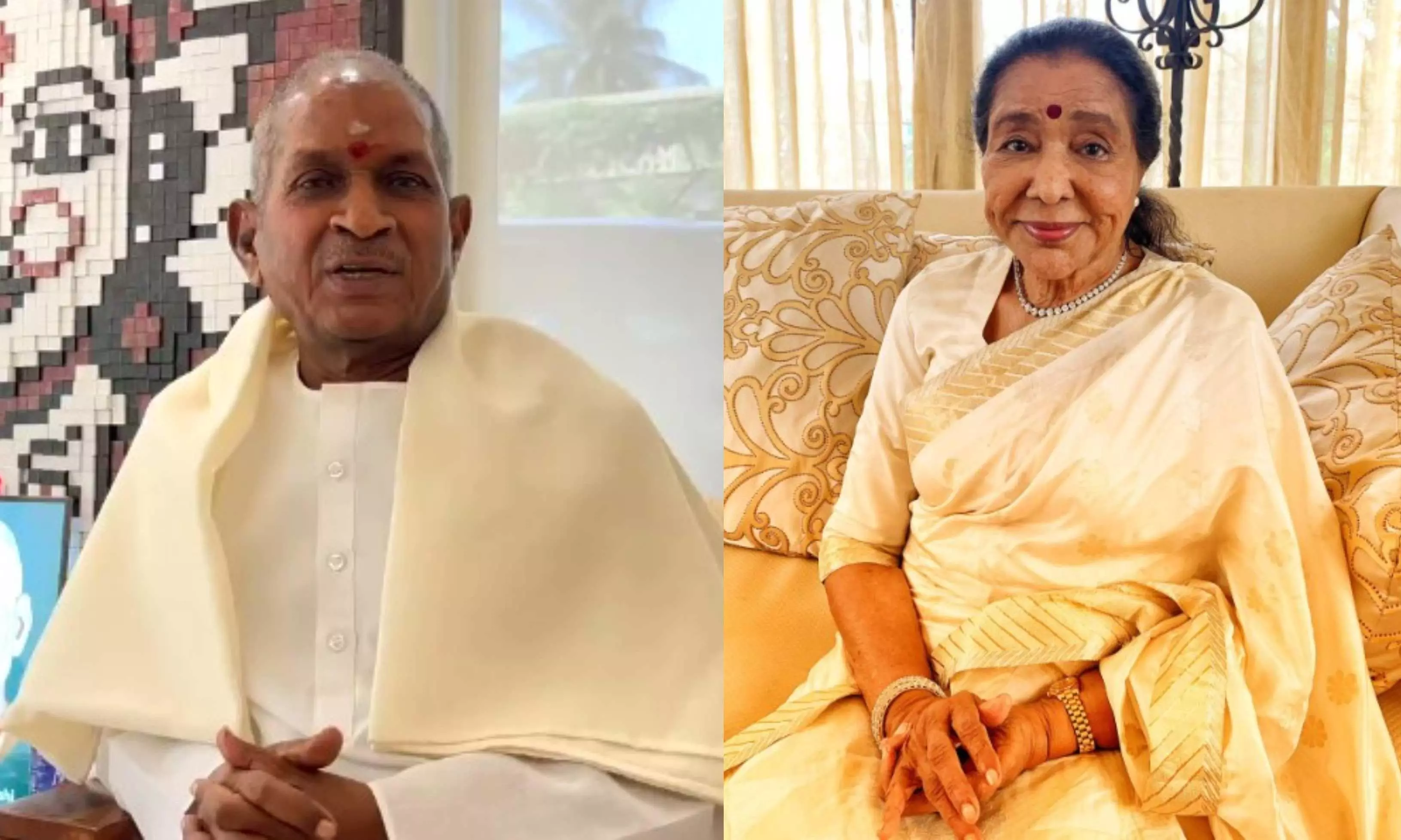 Ilaiyaraaja mourns death of Asha Bhosle in a touching video clip. Photo: Instagram/Ilaiyaraaja, Asha Bhosle