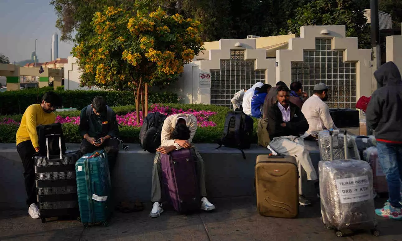 Passengers stranded by the closure of Dubai International Airport wait for assistance in the airport parking lot in Dubai. Photo: PTI