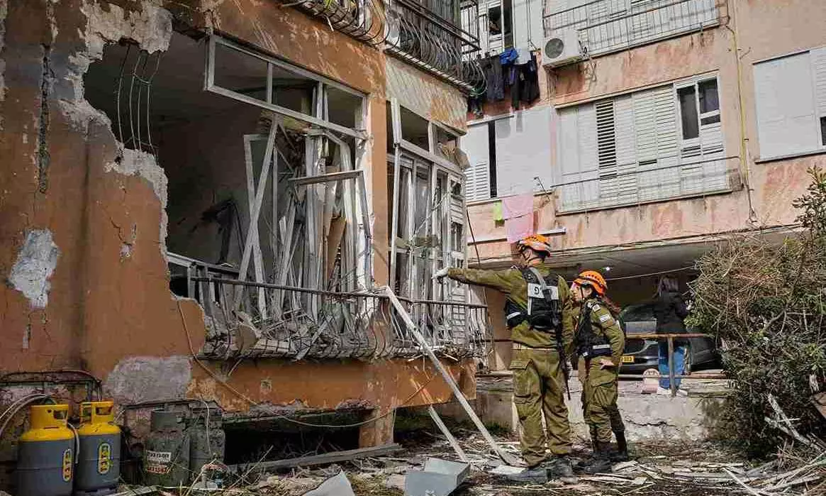 Israeli security forces inspect damage at an apartment building struck by an Iranian missile in Petah Tikva, Israel, on Saturday, April 4. AP/PTI