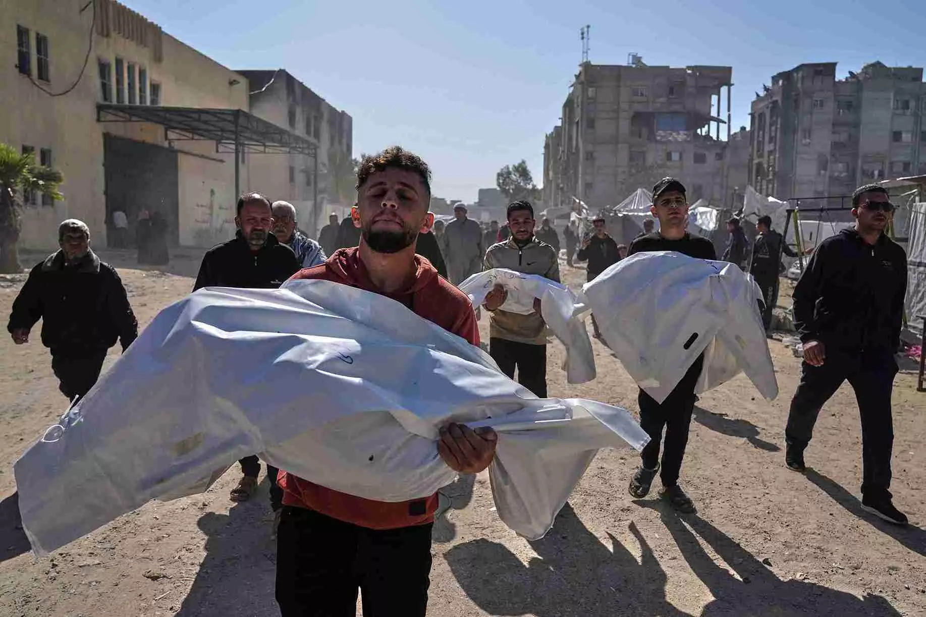 Mourners cradled and kissed the faces of the dead. A man stroked a child's forehead with his finger before body bags were closed.