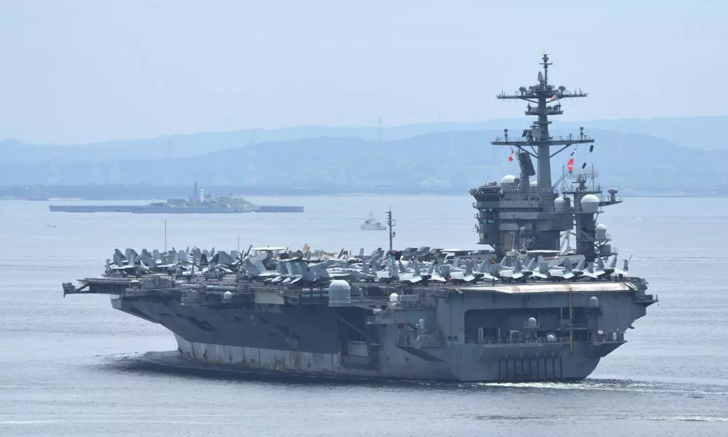 The carrier was reportedly escorted by three Arleigh Burke-class guided-missile destroyers, USS Frank E. Petersen Jr. (DDG-121), USS Spruance (DDG-111) and USS Michael Murphy (DDG-112), which accompanied it during the passage.