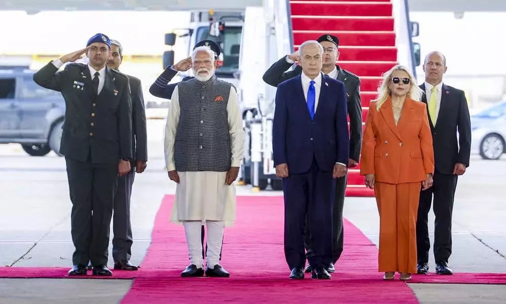PM Narendra Modi was received by Israeli PM Benjamin Netanyahu and his wife Sara at Ben Gurion airport; defence, trade, technology, and regional security will be high on the agenda