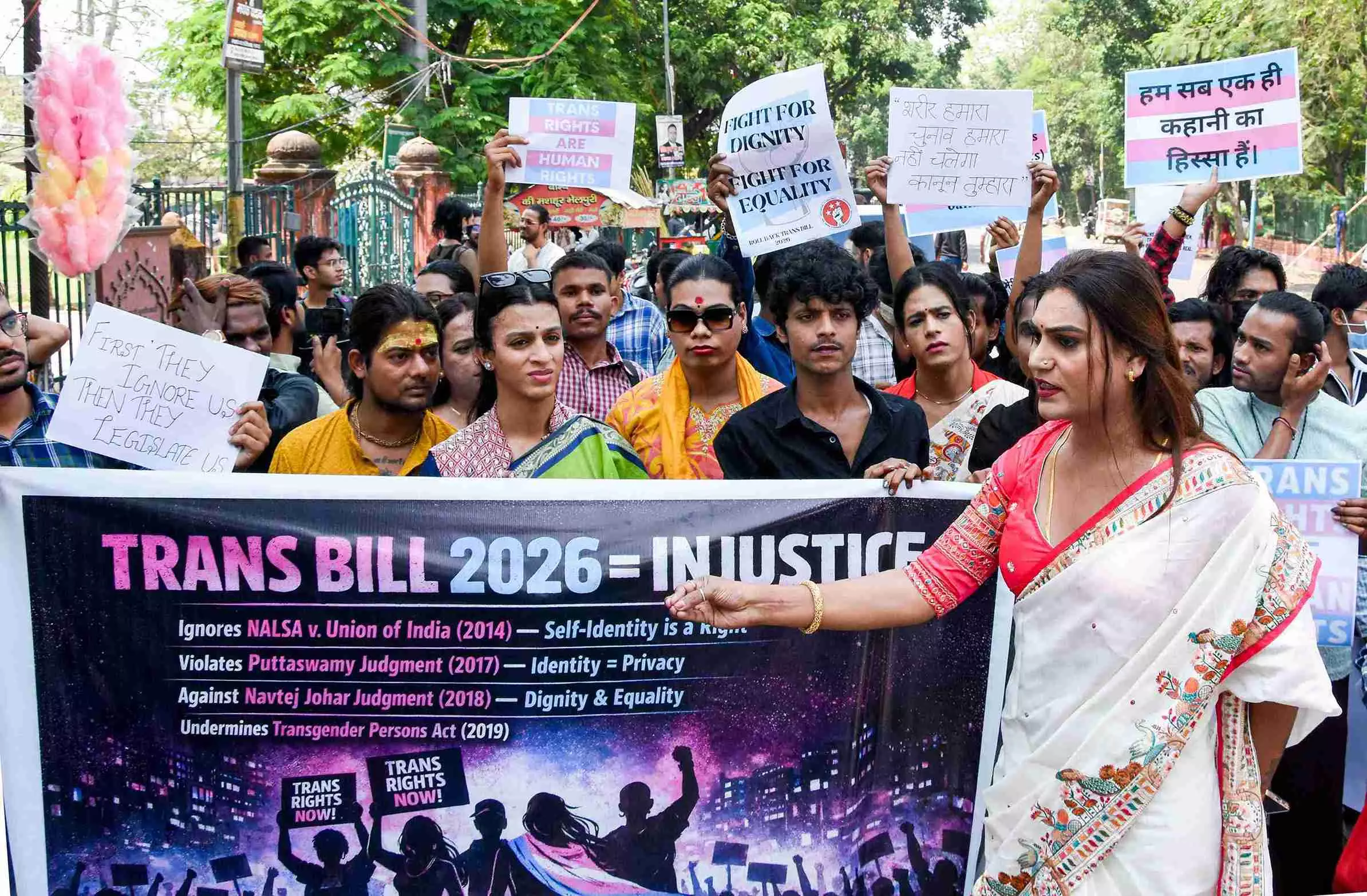 Activists stage a protest against the Transgender Persons (Protection of Rights) Amendment Bill, 2026, at Begum Hazrat Mahal Park, in Lucknow, Uttar Pradesh on Sunday (March 29). Photo: PTI