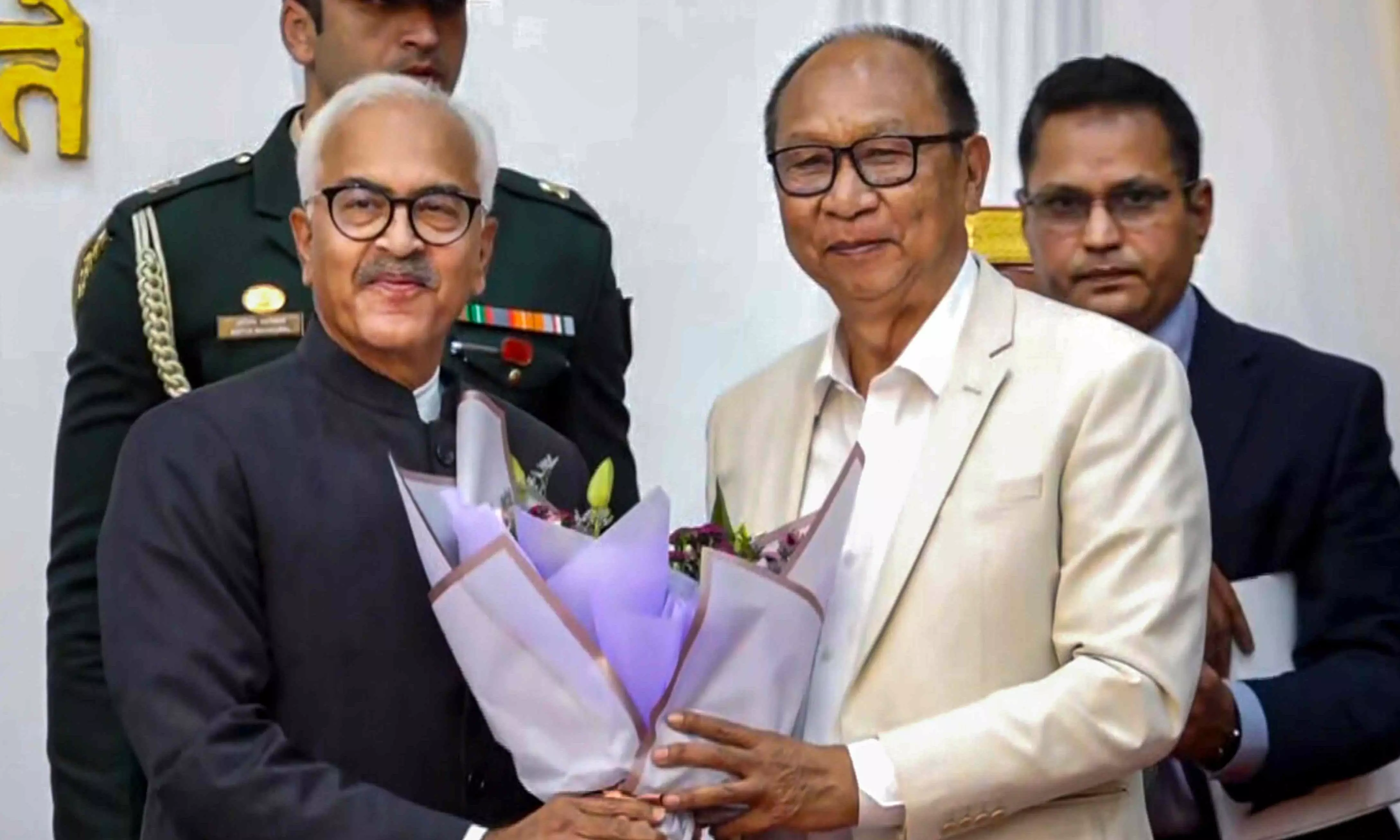 Nemcha Kipgen, a BJP MLA who belongs to the Kuki community, and Naga People's Front legislator L Dikho, took oath as deputy chief ministers of Manipur.