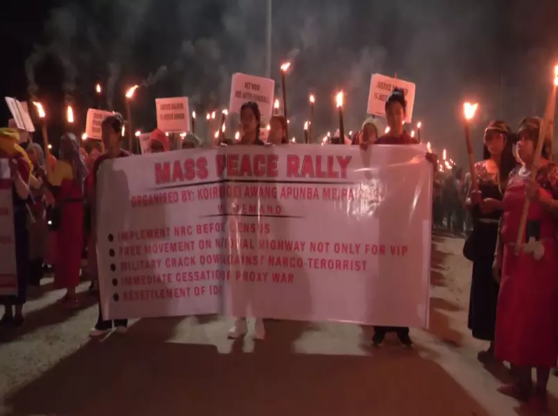 A seven-km-long torch rally was brought out from Mayai Lambi to Keishamthong in Imphal West district on Monday night, but the participants turned violent and clashed with the security forces, a police officer said.