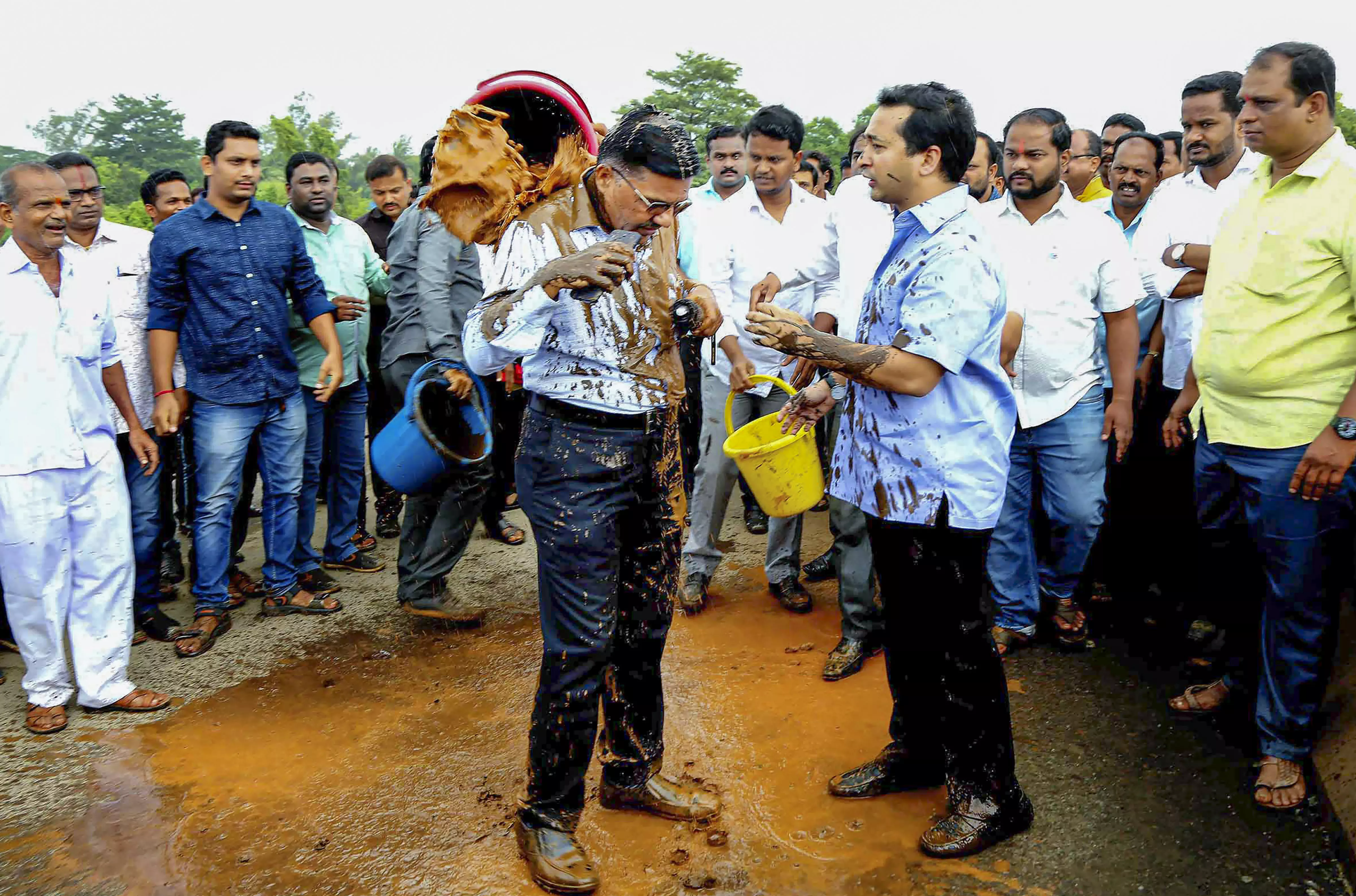 According to the prosecution, the legislator and his followers, frustrated by the poor quality of the roadwork and waterlogging, confronted the engineer. They poured muddy water on Shedekar and forced him to walk through slush in public.