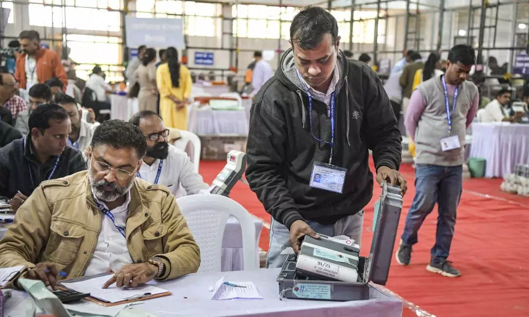 Polling officials counting votes in one of the municipal corporations during the Maharashtra civic polls on Friday (January 16). Photo: PTI
