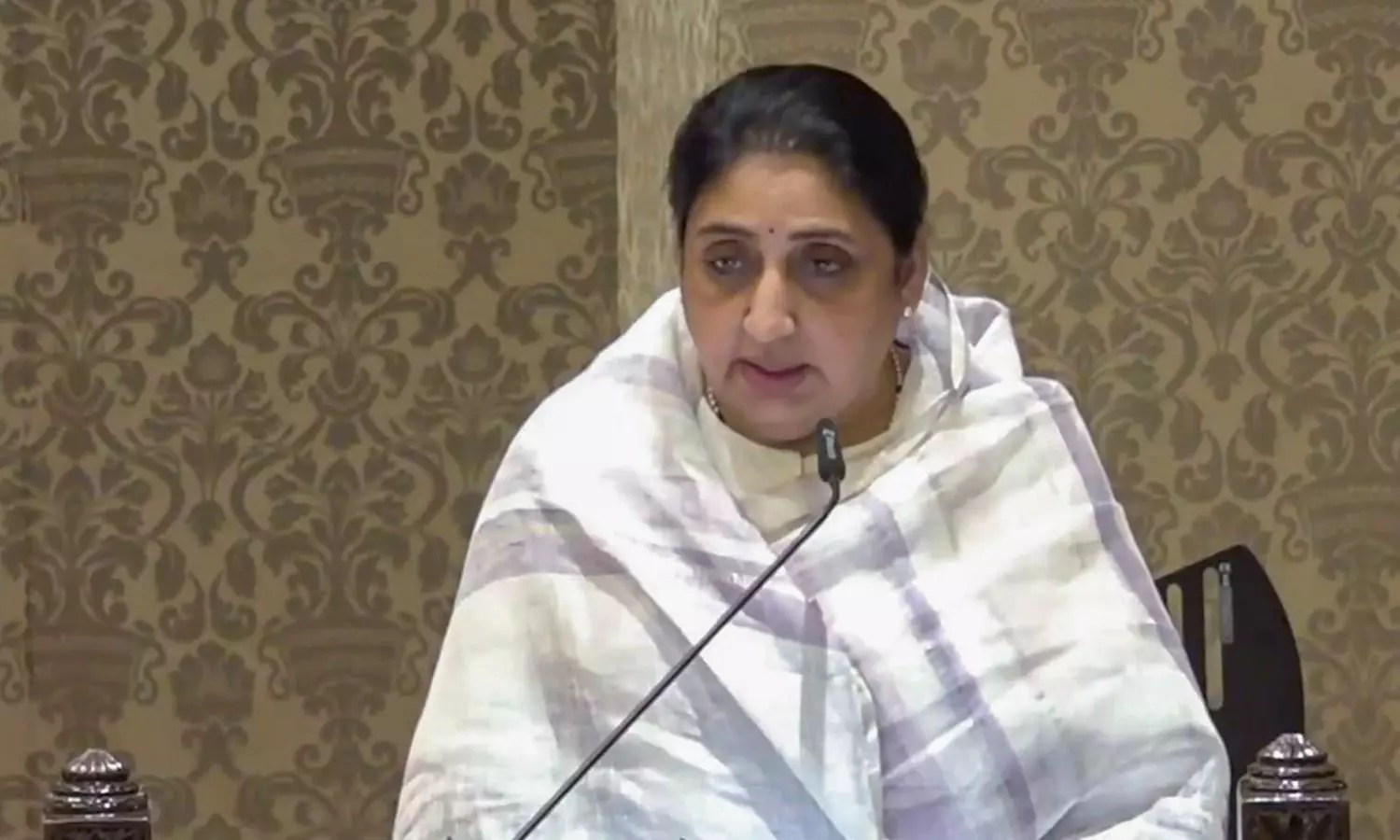 Rajya Sabha MP Sunetra Pawar, wife of late NCP chief Ajit Pawar, takes oath as Maharashtra's first woman Deputy Chief Minister during a ceremony at Lok Bhavan, in Mumbai, on Saturday (January 31). (Screengrab/@SunetraA_Pawar/X via PTI Photo)