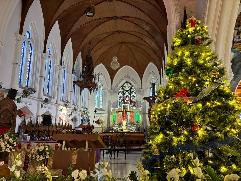 A beautifully lit-up Christmas Tree at Santhome Cathedral Basilica, or St Thomas Cathedral Basilica National Shrine, Chennai, glows with the joy of Christmas season. Photo: Karunakaran