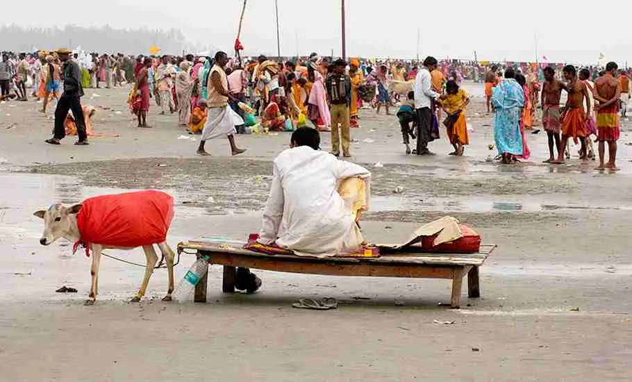 According to Hindu belief, a holy dip in the Ganga at the confluence of the river and the sea in and around the Makar Sankranti day absolves one of their sins and leads to salvation.