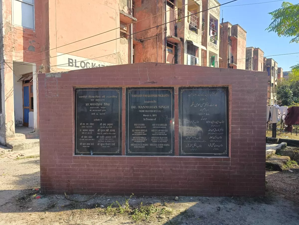 A memorial plaque at the Jagti township for displaced Kashmiri Pandits in Jammu. Photo: Basharat Amin