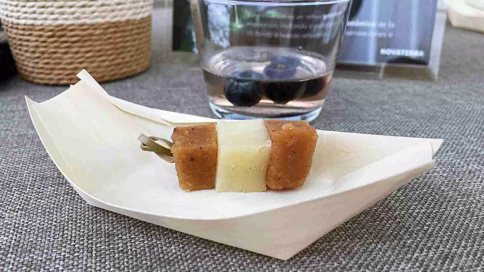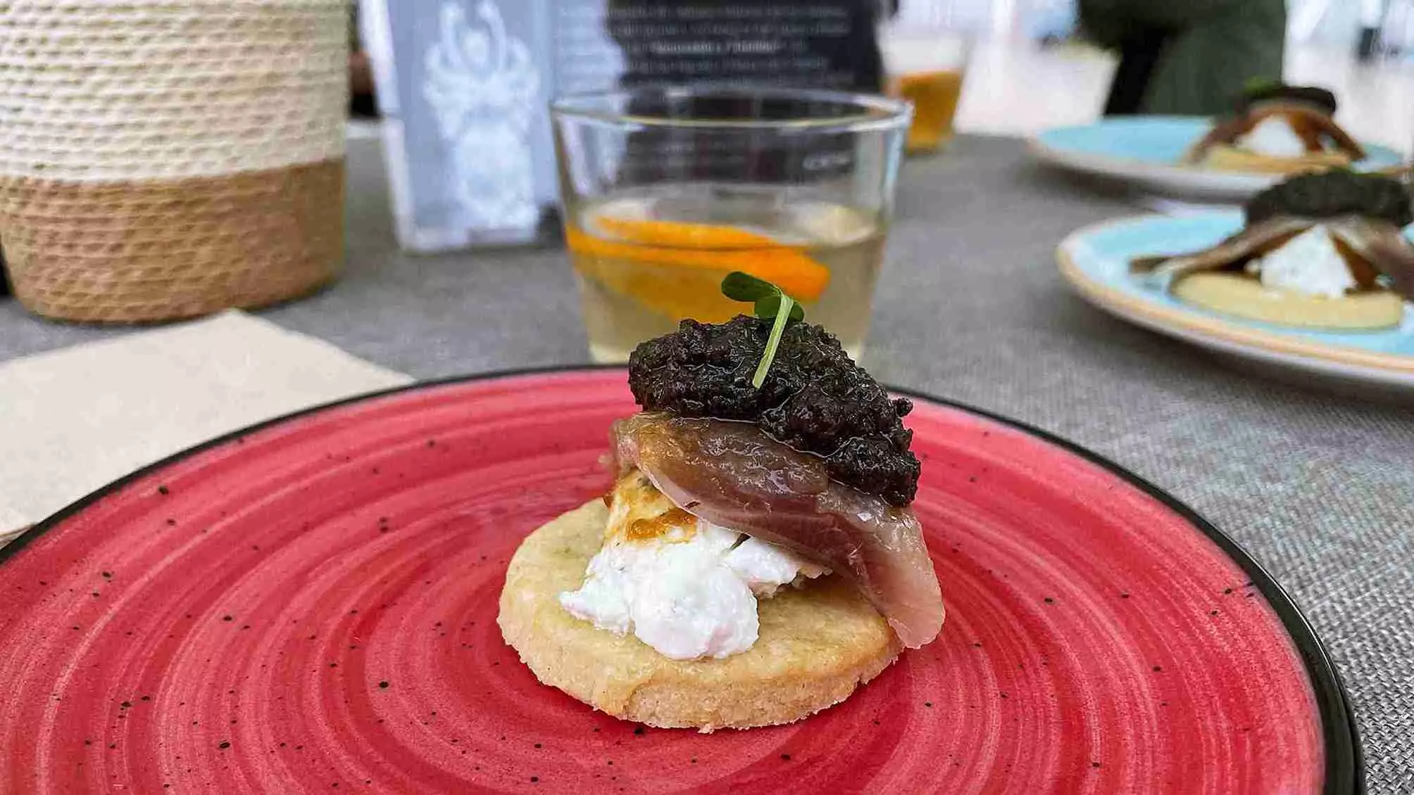 The afternoon began with what can only be described as a revelation in small plates. As guests settled into their corners of the high-top tables on the upper floor within CaixaForum, Maria Salamia, a curator who has been masterfully bringing gastronomy together with art since 2017, introduced the carefully selected offerings. “These are smoked sardine,” she explained, gesturing to the delicate fritters before us. “Actually, it's like a small montarito or a small tapa—you can make it with the ingredients you want.” She pointed next to a trio of vivid bites; cheese with pimentón, cheese with truffle, and a slice of Manchego cheese topped with a square of membrillo. Each was thoughtfully paired to evoke both tradition and bold reinterpretation, reflecting the very ethos of the exhibit surrounding us.