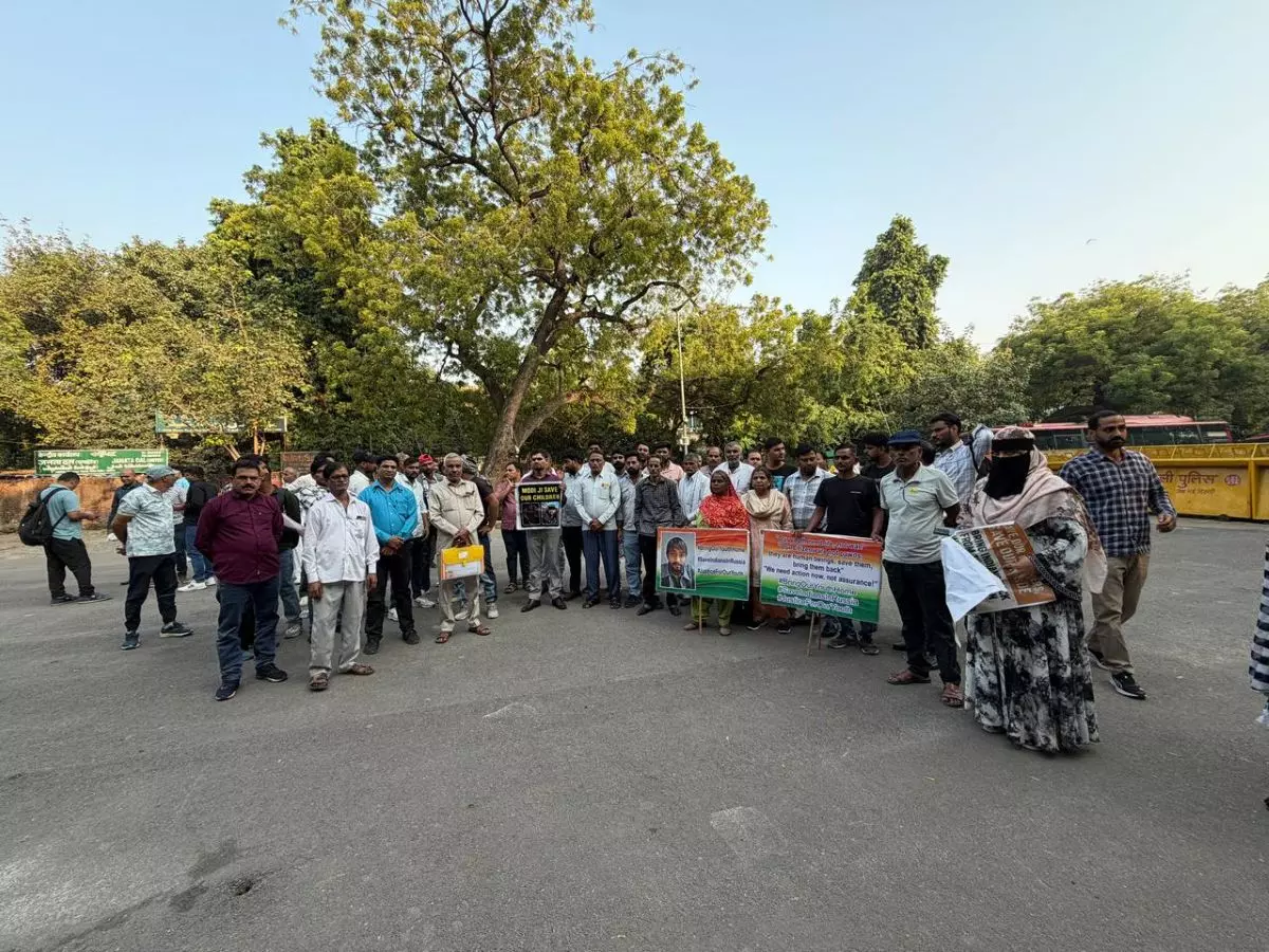 Families of young men from Haryana allegedly trapped into joining the Russian army protest in Delhi last month. Photo: By special arrangement