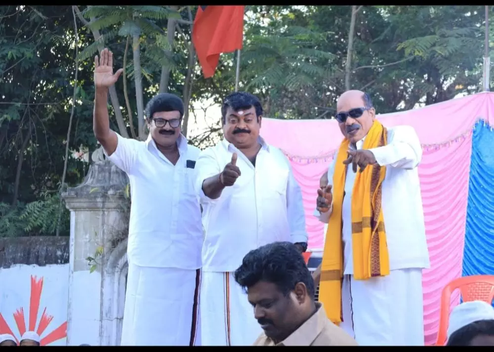 Kumar 'Vijayakanth' (middle) during a campaign. Photo: By special arrangement