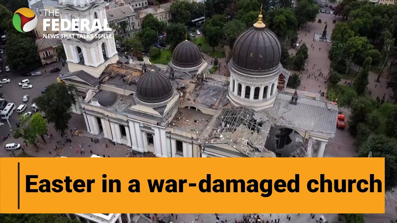 Watch: Ukrainians in Odesa celebrate Easter in war-damaged cathedral