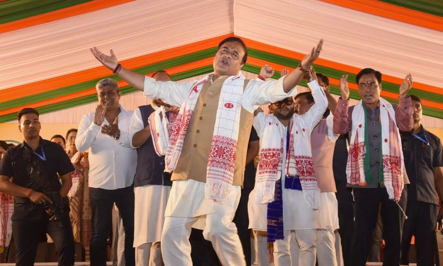 Assam Chief Minister Himanta Biswa Sarma at a Vijay Sankalp Sabha rally ahead of the April 9 Assembly elections, in Guwahati, on April 5, 2026. Photo: PTI