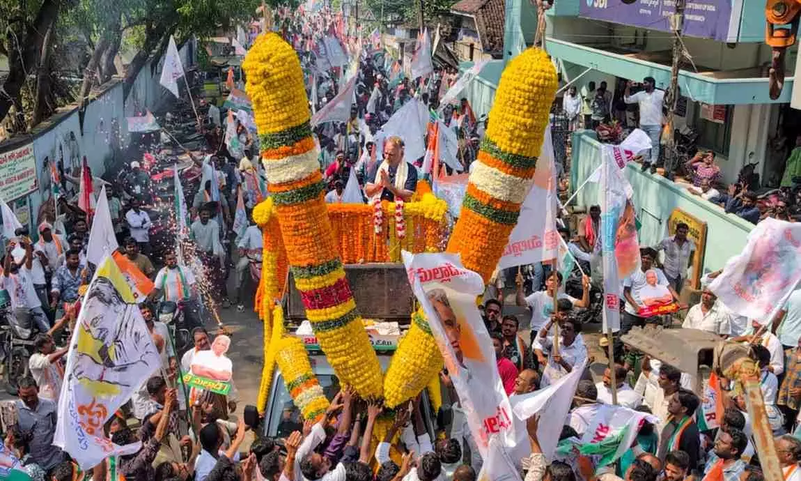 Congress candidate from Muthialpet constituency, Malladi Krishna Rao, during an election rally on Thursday (March 26). Photo: PTI