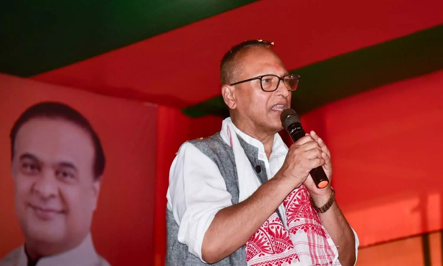 BJP candidate from Dispur assembly constituency Pradyut Bordoloi addresses a public meeting in Guwahati on March 26 ahead of assembly elections. Photo: PTI