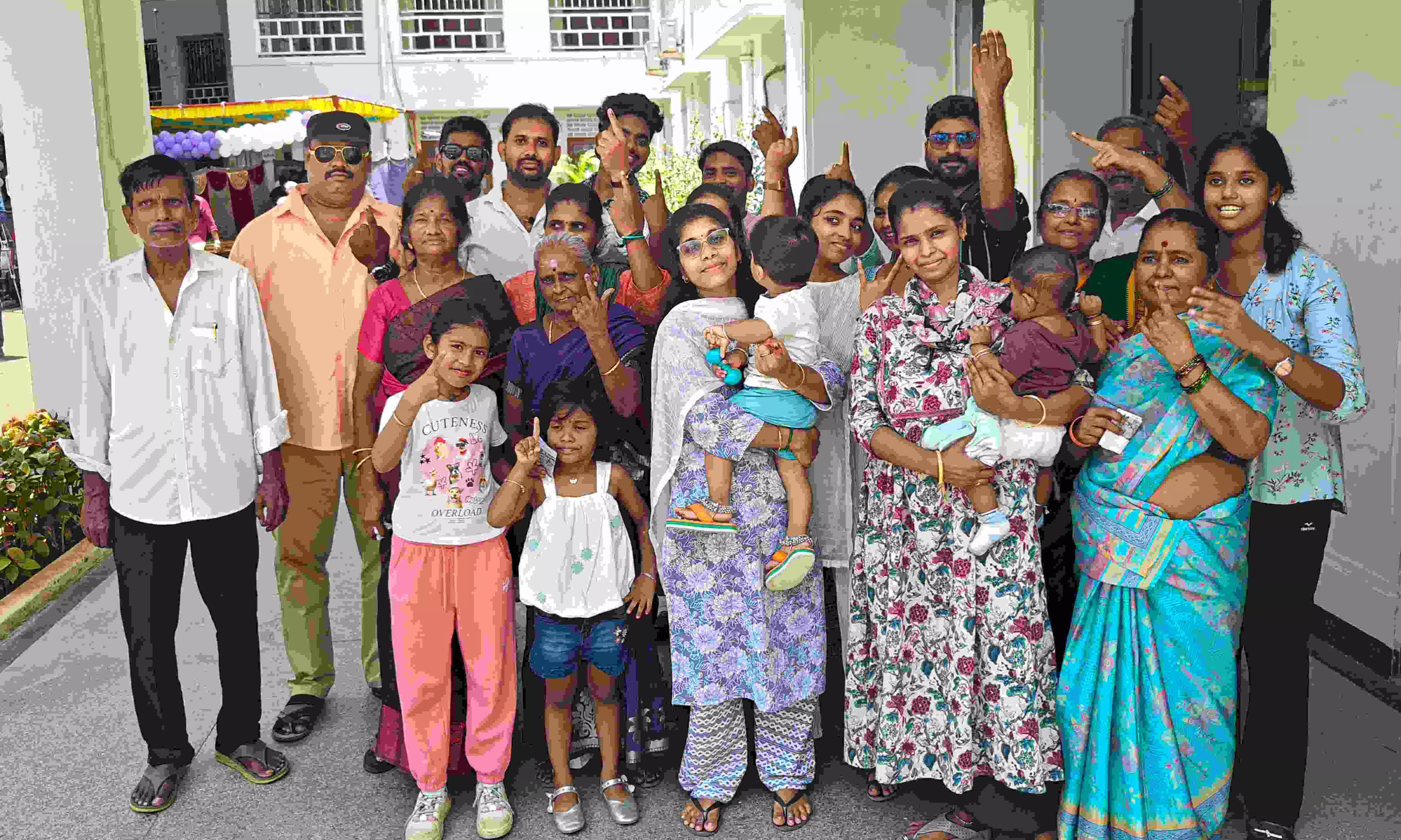 Members of a three-generation family show their inked fingers after casting votes at a polling station during the Tamil Nadu Assembly elections, in Chennai. Photo: PTI