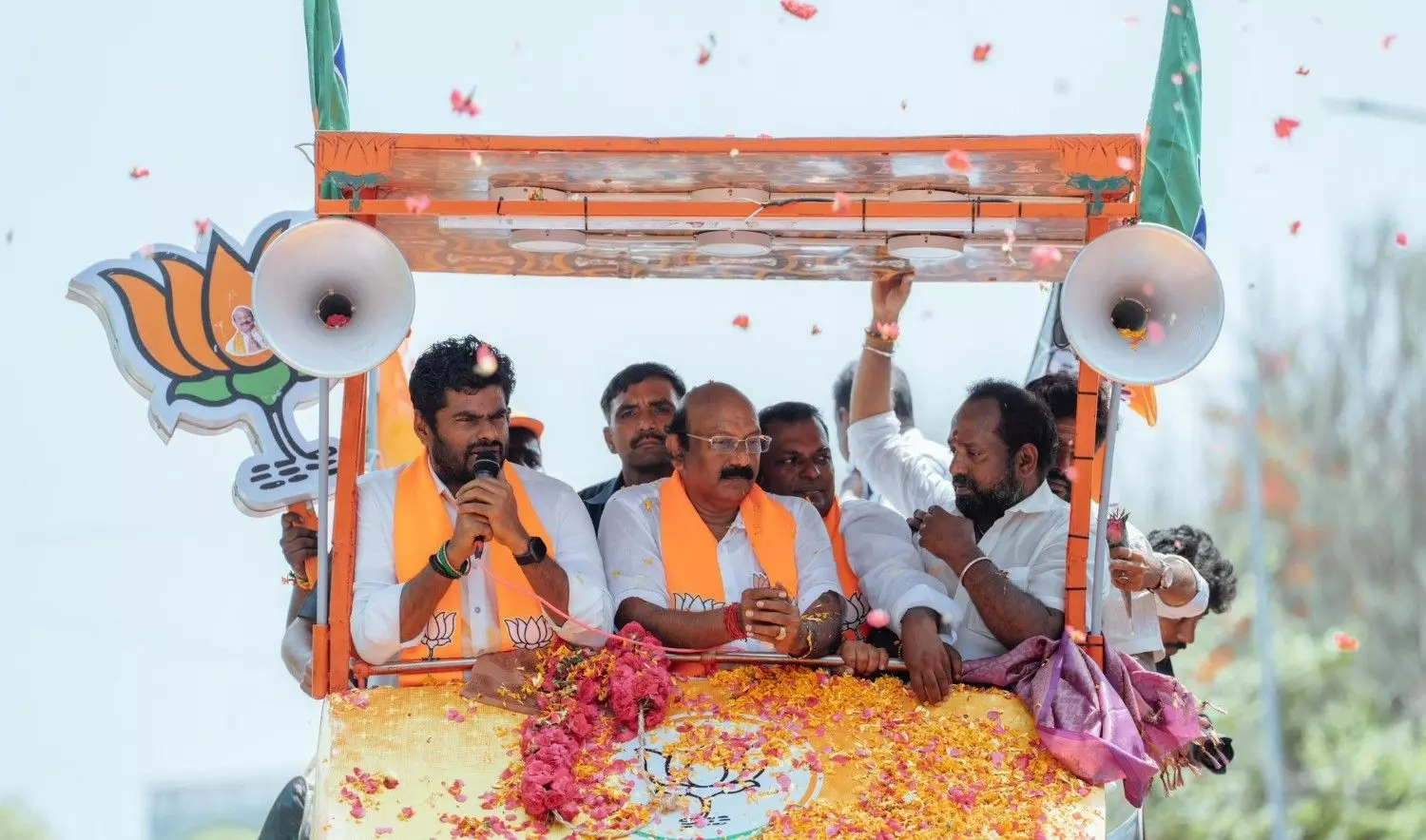 BJP leader K Annamalai (left) campaigning in Puducherry. Photo: X/@annamalai_k