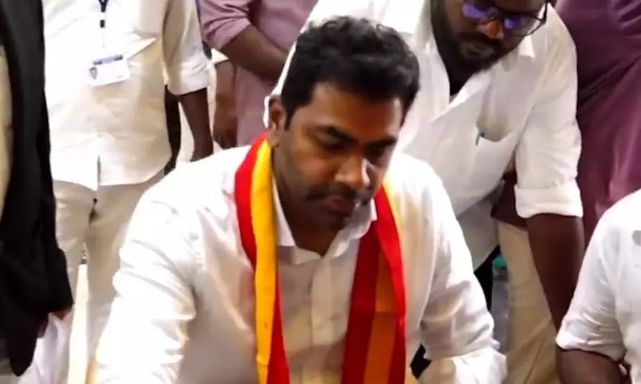 Aadhav Arjuna is contesting in the Villivakkam Assembly constituency in Chennai on the TVK ticket, and he filed his nomination papers on Monday (March 30). Photo: X screengrab | @PTI_News