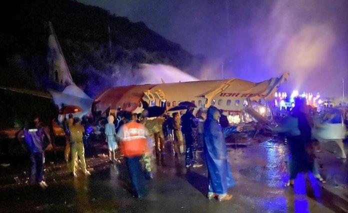 A statement by civil aviation regulator DGCA said the airplane after landing at Runway 10 continued moving to the end of the runway amid heavy rains and “fell down in the valley and broke into two pieces”.