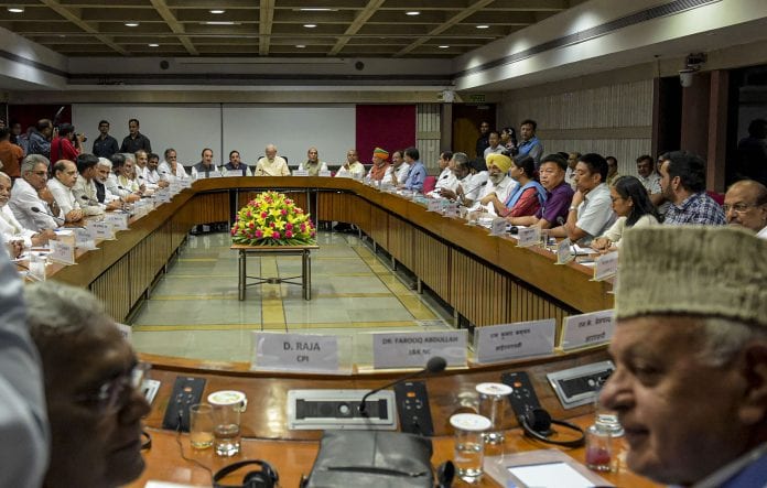Prime Minister Narendra Modi chaired the meeting, attended by representatives of all parties, including leader of opposition in Rajya Sabha Ghulam Nabi Azad, National Conference leader Farooq Abdullah and TMC leader Derek OBrien.