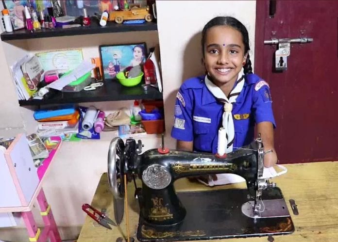 Differently-abled,10-year-old girl stitches masks for school students