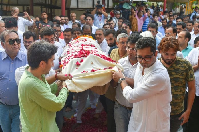 His mortal remains were consigned to flames at the Lodhi Road crematorium at at 4.30 pm on Sunday.