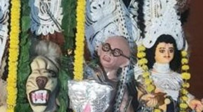 Mahatma Gandhi look-alike as Asura in Kolkata puja pandal stokes controversy