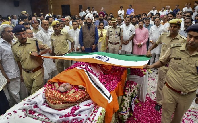 Last rites of Sushma Swaraj performed with full state honours
