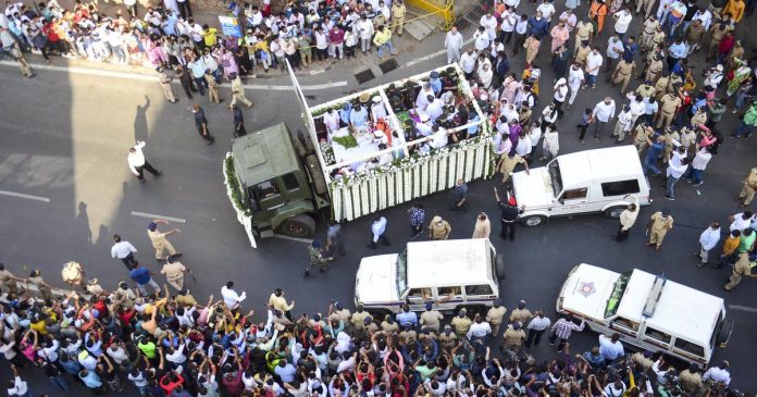 The funeral was held at the city’s iconic Shivaji Park, which has been given the temporary status of a cremation ground by the municipality.