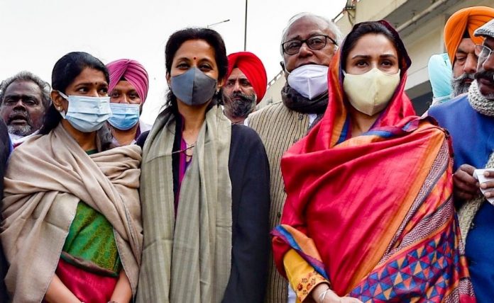 The MPs, belonging to 10 different parties including Shiromani Akali Dal (SAD), DMK, NCP, and Trinamool Congress (TMC), were led by SAD MP Harsimrat Kaur Badal, who said they were not allowed to cross the barricades and reach the protest site.