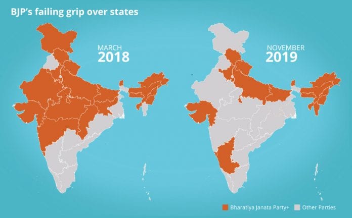 With Jharkhand joining the growing list of states slipping out of BJP’s rule, the party now governs mere 35% of the country’s landmass in comparison to over 71% during its peak in 2017 when it was in power in the entire Hindi-speaking heartland.