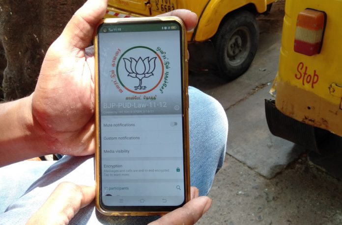 “When I clicked on the link, I was taken to a WhatsApp group run by the BJP,” he said. “The display picture had a lotus, accompanied by the words, ‘Malarattum Thamarai, Olirattum Puducherry’ (Lotus Will Bloom, Puducherry Will Shine). The group was called ‘BJP – PUD – LAW – 11 – 12.’”