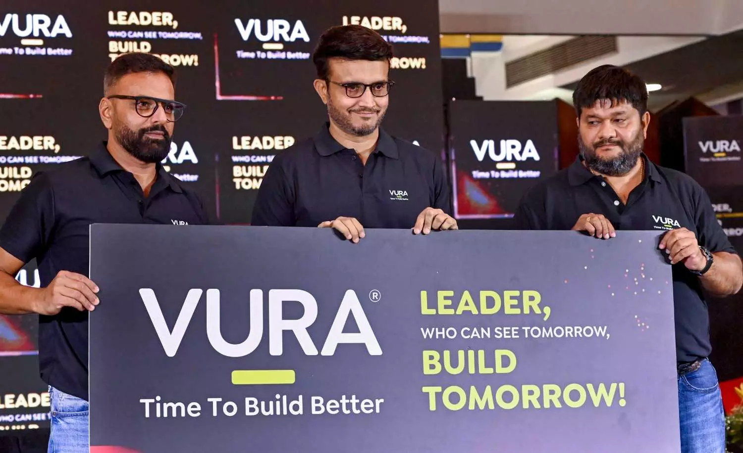Former Team India captain Sourav Ganguly, centre, during a promotional event, in Kolkata, Friday, February 21. PTI