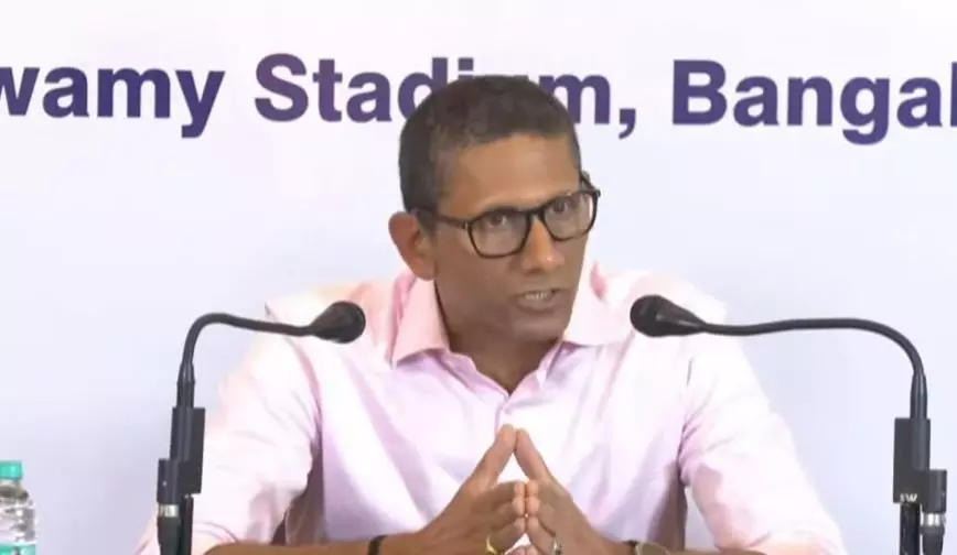 KSCA President Venkatesh Prasad addressing a press conference at the M Chinnaswamy Stadium in Bengaluru on Wednesday (January 21).