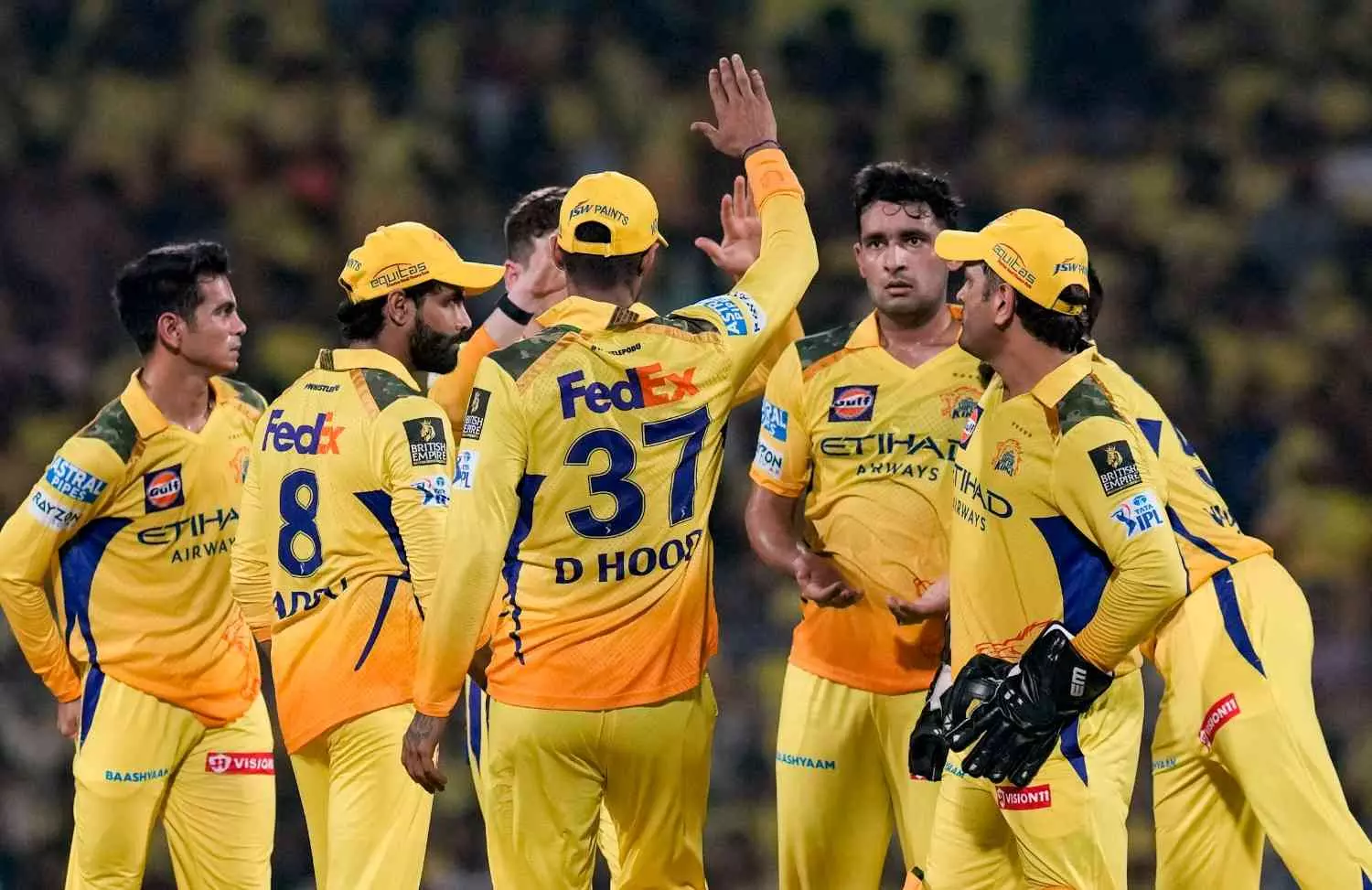 CSK players during an IPL 2025 match. PTI