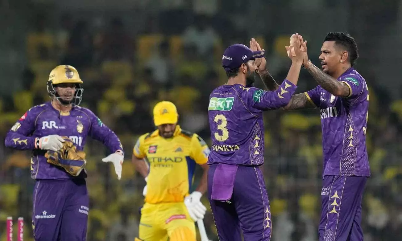 Veteran spinner Sunil Narine (3/13) grabbed three wickets, while Harshit Rana and Varun Chakaravarthy got two each after CSK were invited to bat