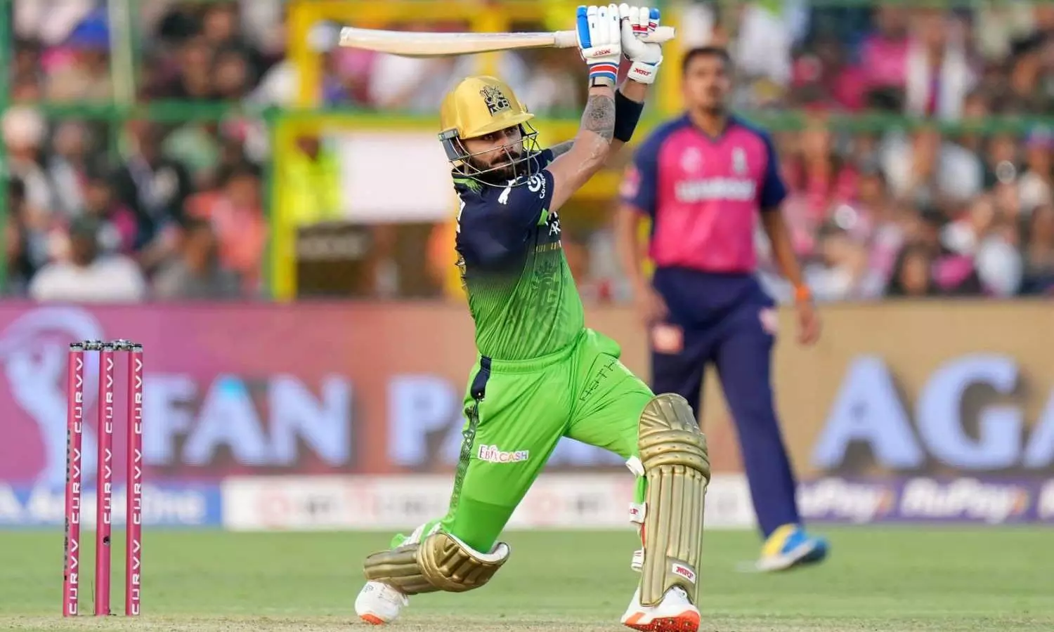 He too had an early life β a miscue off Sandeep's slower ball was put down by Riyan Parag at mid-off, a straightforward chance. But the RCB's iconic batter regrouped quickly and settled into his anchor role.
