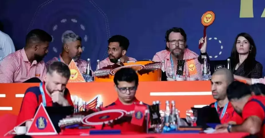 Sunrisers Leeds co-owner Kavya Maran (top, right) during IPL 2026 auction. File photo: BCCI