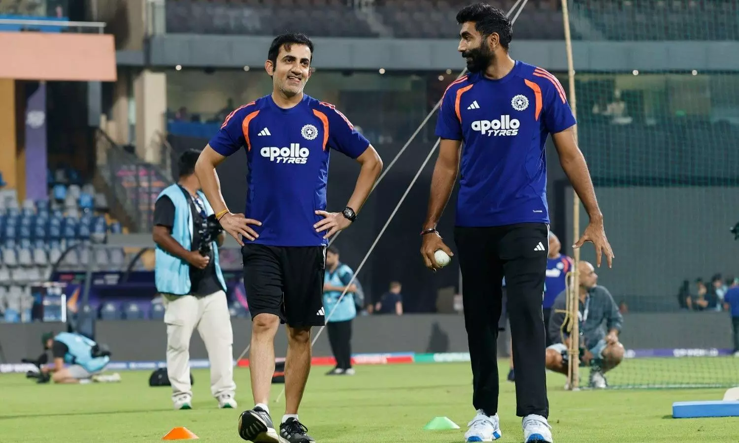 India's head coach Gautam Gambhir (left) and paceman Jasprit Bumrah during a practice session in Mumbai on Tuesday (March 3). Photo: BCCI