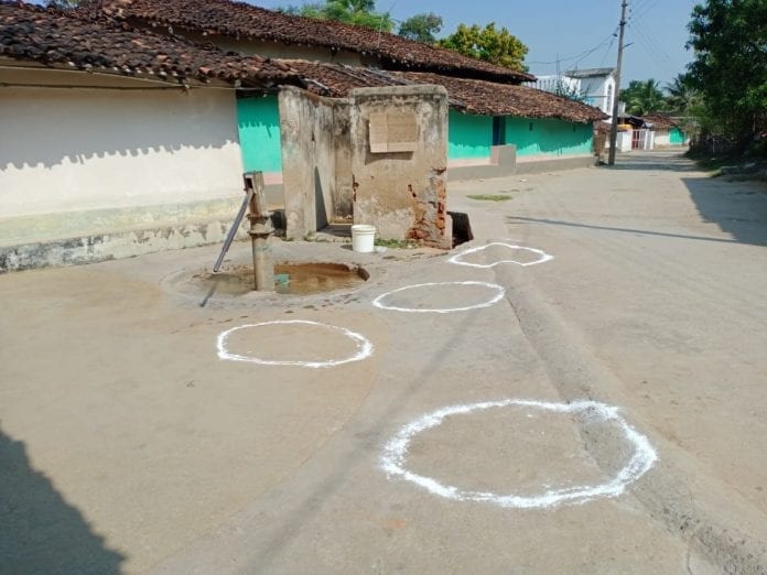 In the last few days, hands pumps and solar pumps in villages of Kunkuri block in Jashpur district of Chhattisgarh have witnessed several new white circles near them. People are limiting themselves within these circles while drawing water.