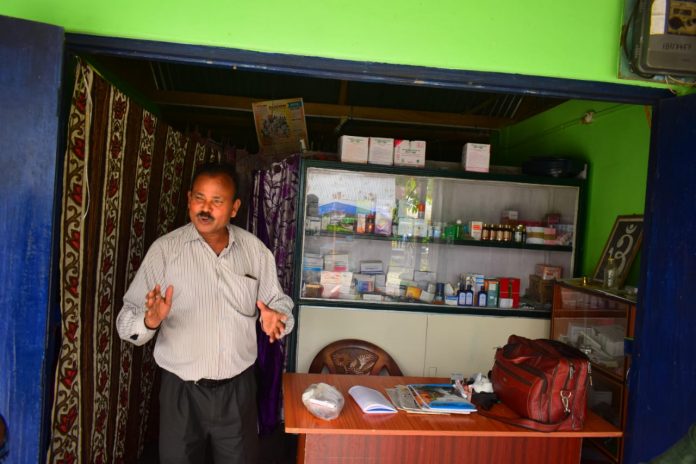 Even today, a steady stream of villagers throng his chamber – a small rectangular room cramped with a wooden table, a plastic chair and a wall-mount shelf stacked with assorted medicines.