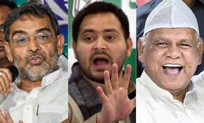 Currently, the Grand Alliance comprises the RJD, Congress, Hindustani Awam Morcha (HAM), Rashtriya Lok Samata Party (RLSP) and the Vikashsil Insan Party (VIP). The last three are headed by former chief minister Jitan Ram Manjhi, former Union minister Upendra Kushwaha and Mukesh Sahni respectively.