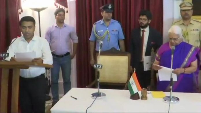 Senior BJP leader Nitin Gadkari, the party’s Goa in- charge, was present at the oath-taking ceremony. The new government was sworn-in with the support of 20 MLAs, including 11 from the BJP and three each from GFP, MGP and Independents.