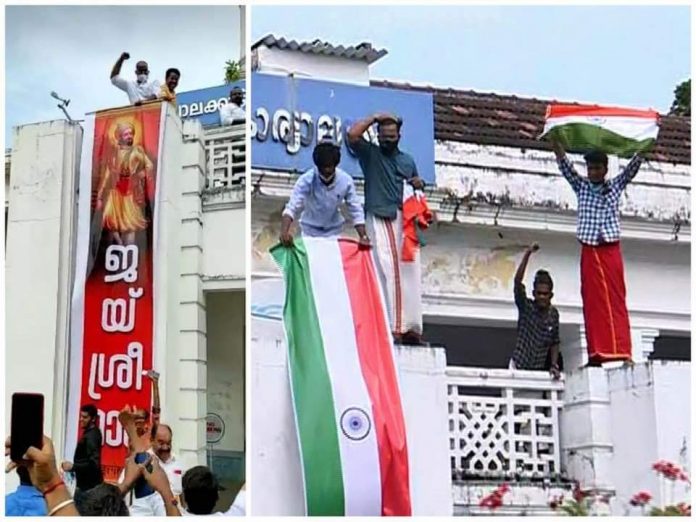 BJP workers unfurl ‘Jai Shri Ram’ banner on govt building in Kerala after poll win