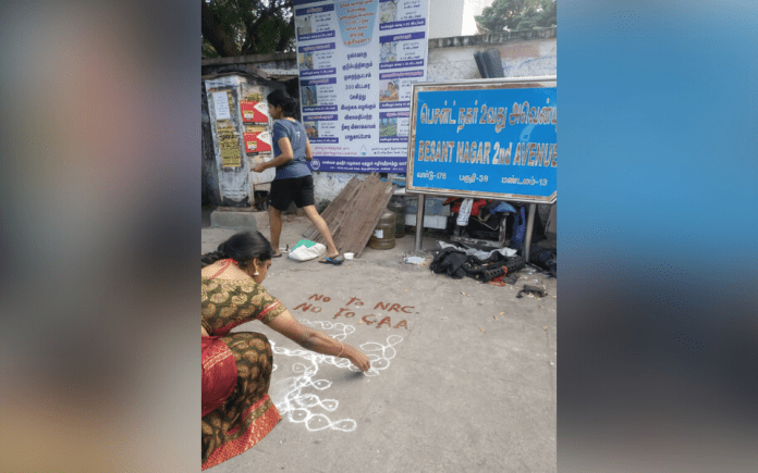 The Besant Nagar police detained and released at least 7 people of Besant Nagar, Second Avenue for drawing anti-CAA motif kolams in front of their houses.